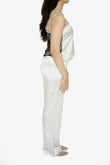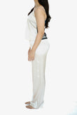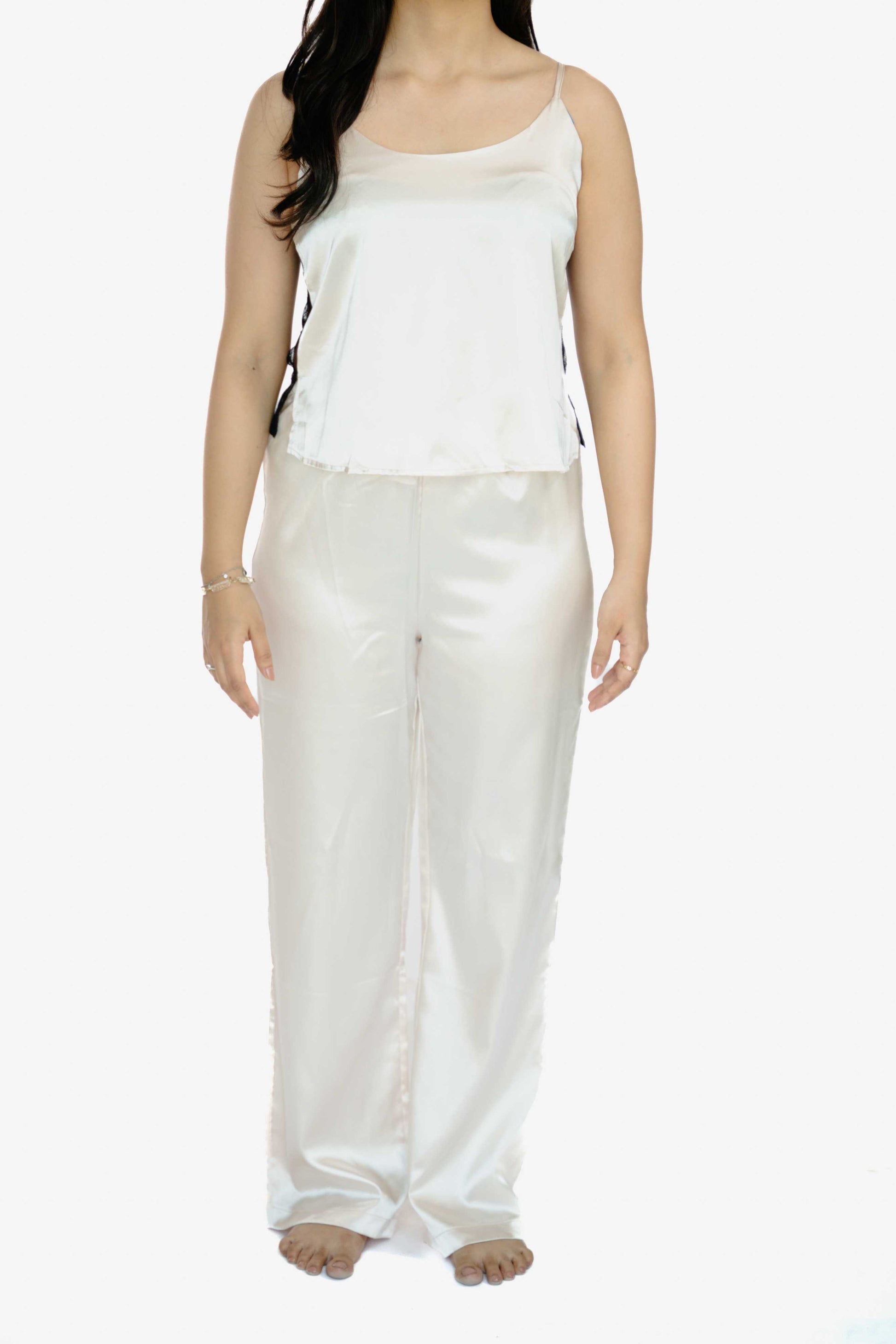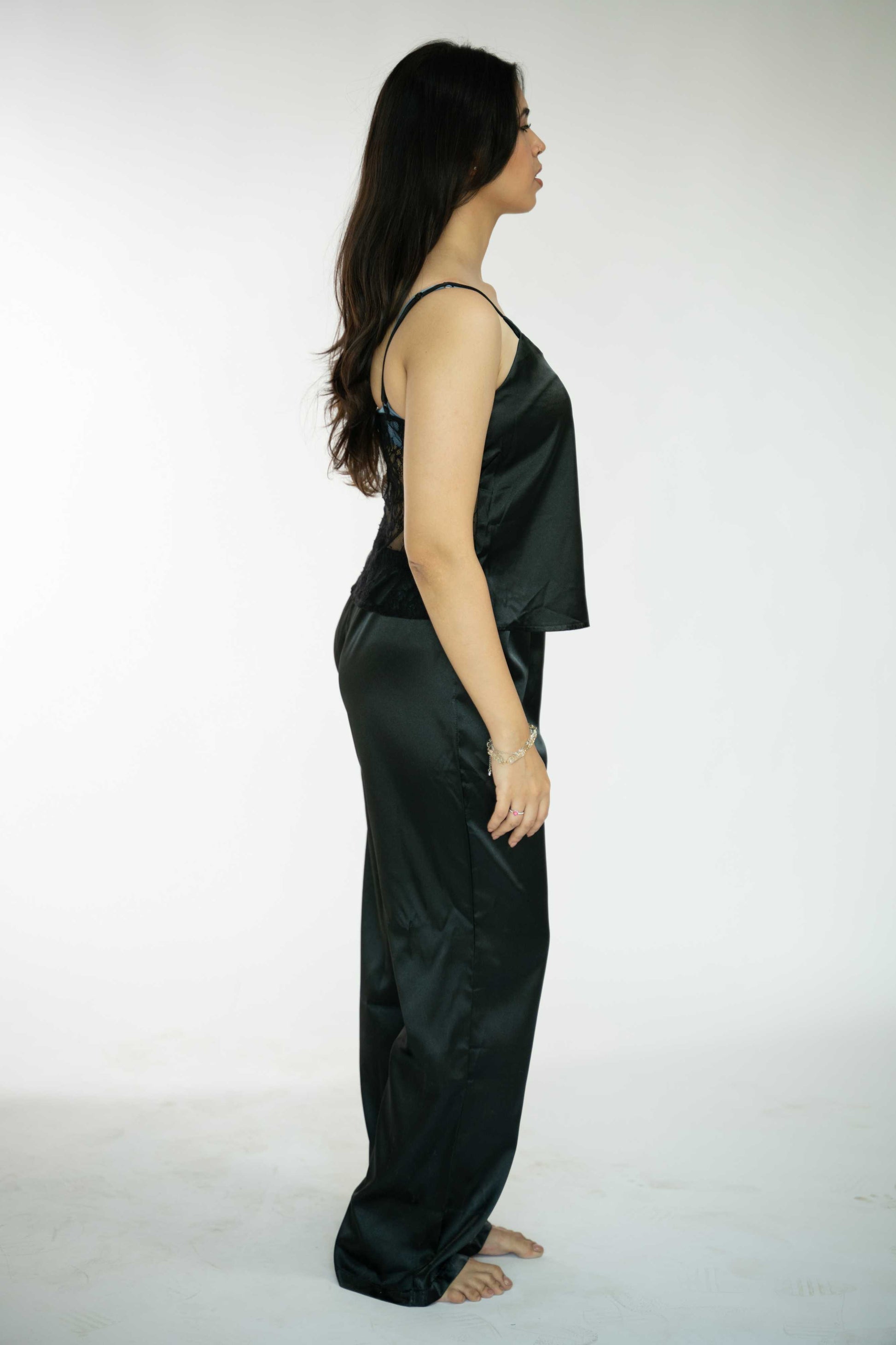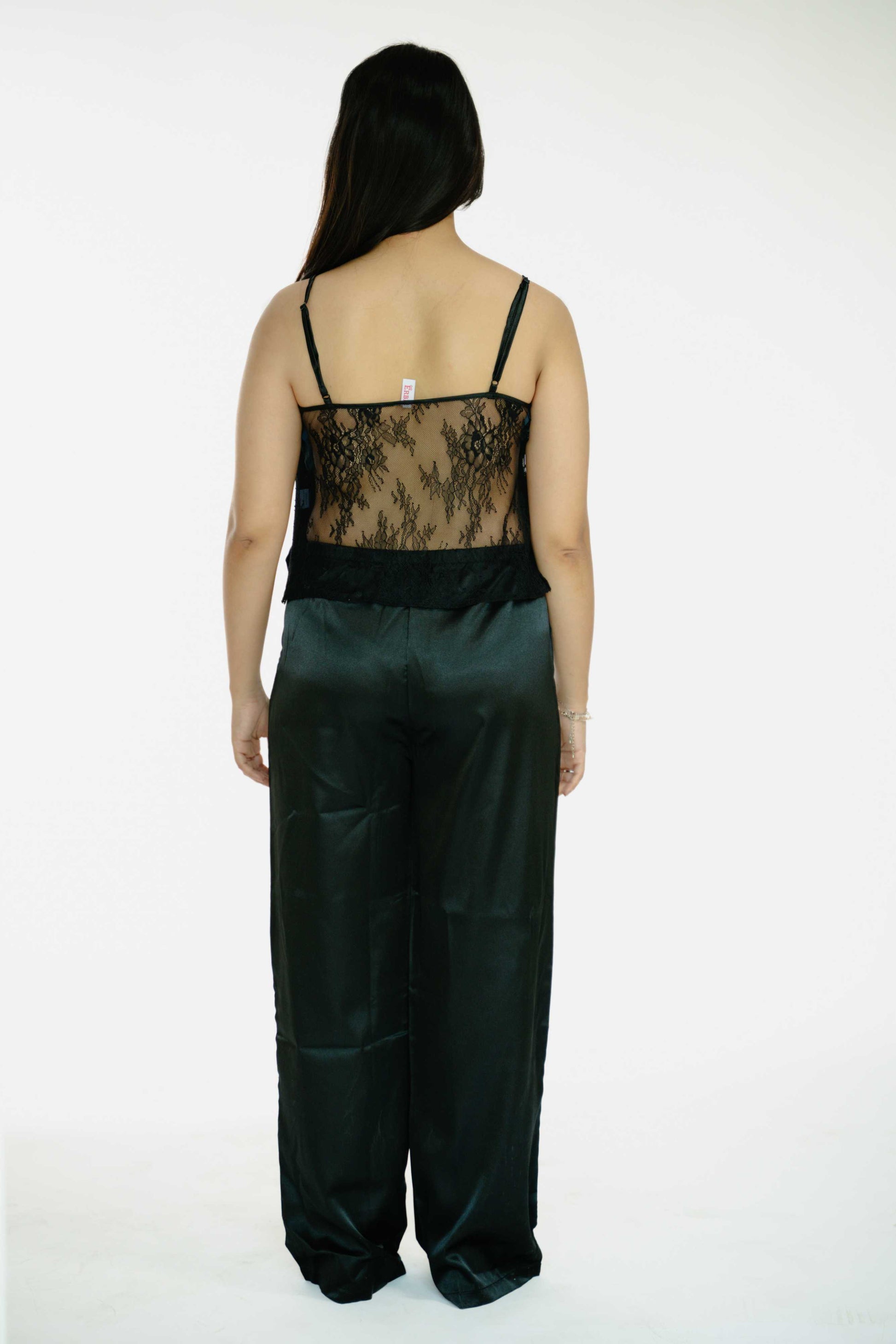 Experience elevated evenings with Erblis's Satin Symphony Sleeveless Pyjama Set for Women, a standout in the realm of high-end loungewear. Crafted from a blend of Polyester (95%) and Spandex (5%), this ensemble offers the perfect balance of stretch and softness. The sophisticated set, available in timeless Black and Beige, showcases slender spaghetti straps leading to a relaxed silhouette. The back of the top is adorned with an intricate floral lace panel, exuding sheer elegance. Complementing the top, the fluid, silky bottoms, possibly in a palazzo style, underscore the comfort intrinsic to the loungewear domain. In line with Erblis's commitment to sustainability, the eco-conscious packaging arrives with a reusable tote bag, reflecting the brand's excellence in comfort, style, and grace. Dive into Erblis's world and make your nights extraordinary with this Satin Sleeveless Pyjama Set. Enhance your loungewear collection and embrace the Satin Pyjama Set today.